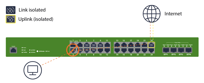 Validate uplink behavior: Ensure the uplink/trunk is not isolated. Do not isolate any port that forwards toward your distribution/core.